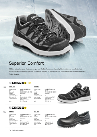 All Sievi safety footwear feature microporous FlexStep®soles developed by Sievi, which has excellent shock absorption and flexibility properties. The entire material of the flexible sole eliminates stress and shocks to the feet and spine.